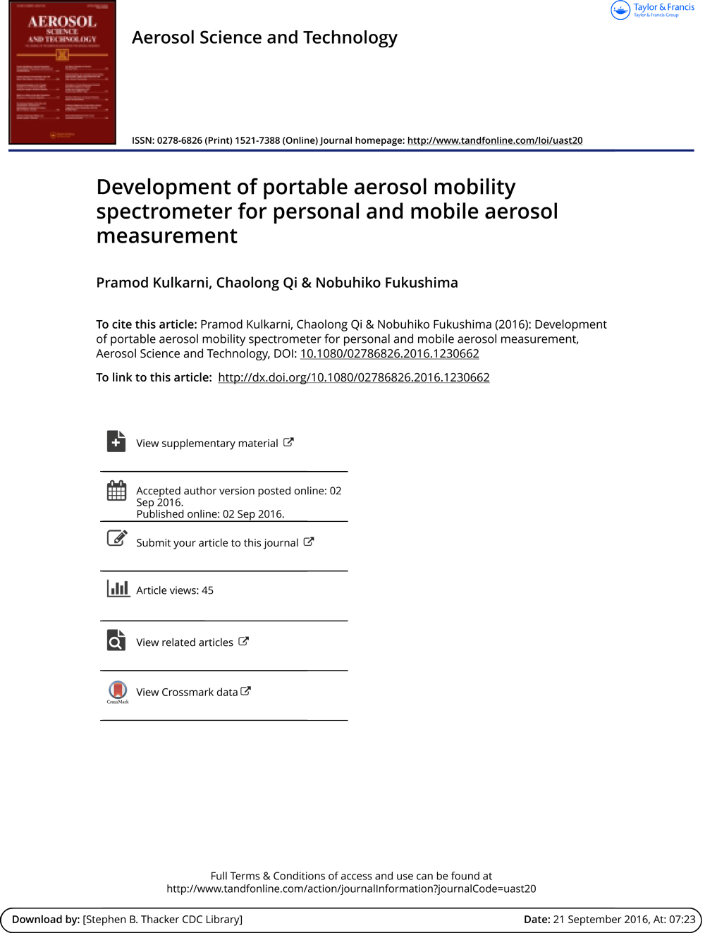 Development of portable aerosol mobility spectrometer for personal and mobile aerosol measurement